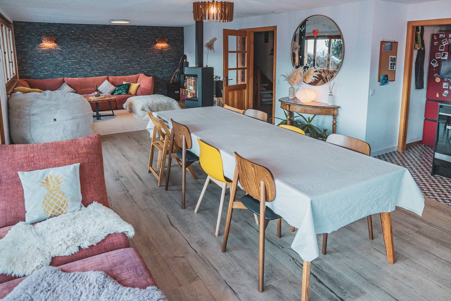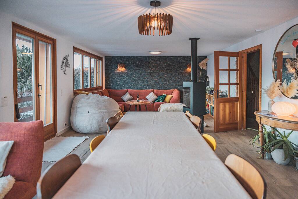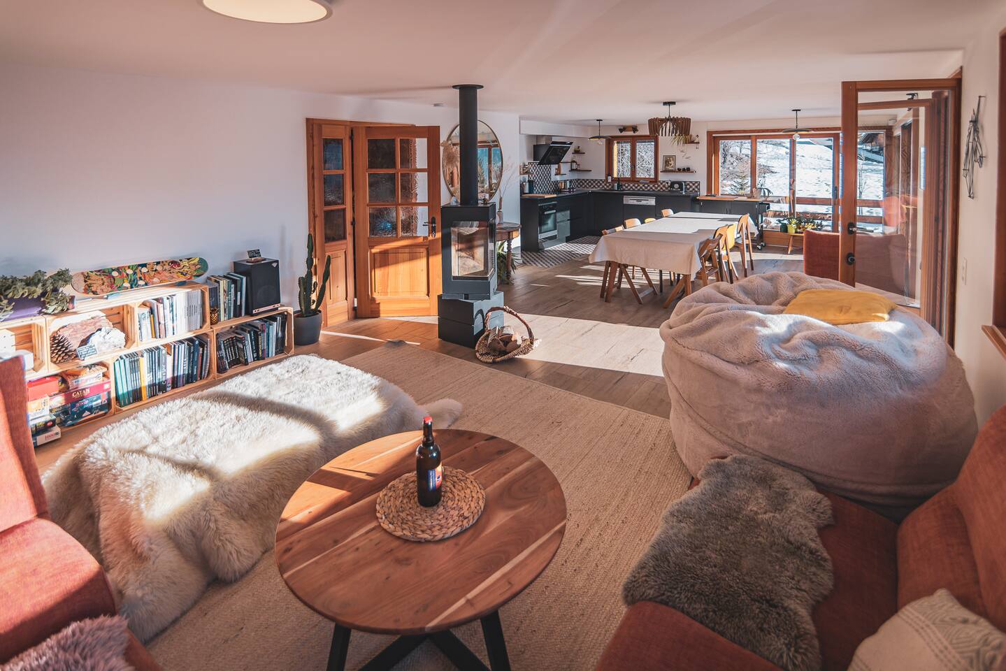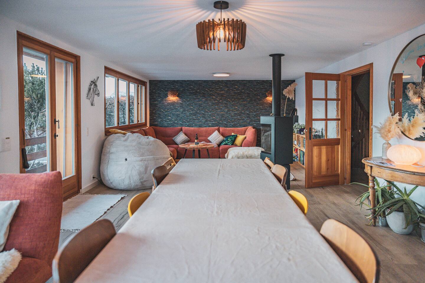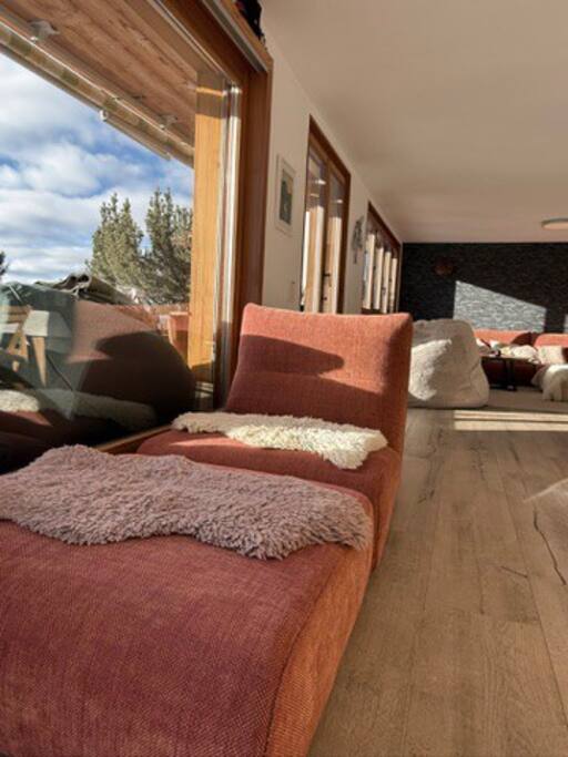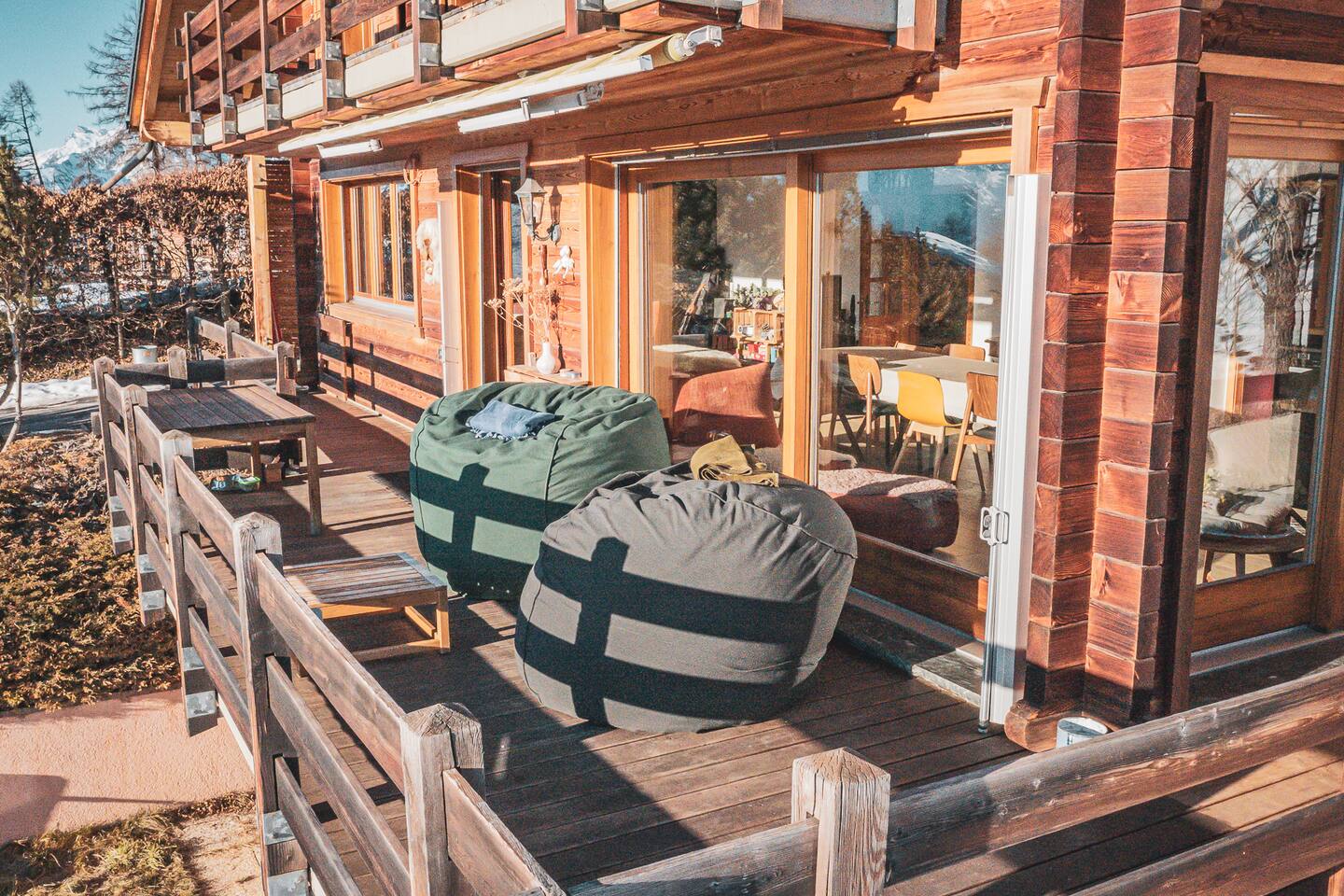 *-Location-* -20 min drive from Sion -Mase: a stunning historic mountain village surrounded by natural beauty -Perfect for ski lovers: 12 min from Nax Mont Noble, 20 min from Four Valleys and Evolène and 40 min from Arolla and Vercorin, ski touring parc close by -Spectacular views over mountains and valley -Countless hiking trails, such as the ‘Bisse de la Tsa Creta’ -Ideal for families, groups, team-building retreats … *-Living space-* -Open concept living space: spacious living room with dining area and kitchen -Big bay windows with direct access to sun-flooded terrace -Indoor pivotable fireplace for the authentic chalet vibe -XXL designer sofa and large Vetsak bean bag for relaxation -Fully equipped modern kitchen with a pantry for extra storage -Italian stovetop espresso maker for coffee lovers -Fondue and raclette set -Additional kitchenette downstairs for extra convenience -Second lounge downstairs, perfect as a playroom for kids, exercise room or relaxation area *-5 bedrooms-* -Downstairs: one cozy and quiet double room -Upper floor: 3 comfortable bedrooms with queen size beds and one bunk bed room with an extra single bed, access to a private balcony with panoramic view -One bedroom includes a Nintendo Switch with TV screen (parental supervision advised) -Extra beds can be added in the converted attic with stunning mountain view (upon request) *-3 fully equipped bathrooms-* -Downstairs: one bathroom with shower and WC -Upper floor: one bathroom with bathtub and WC, a second bathroom with shower and WC -Ground floor: additional WC *-Entertainment-* -High-speed WiFi -Comic book library and board games for cozy evenings -Klipsch The Sixes sound system (bluetooth) -Video projector for movie nights (HDMI cable provided) -Nintendo switch -Ping pong table -Sledges available for fun in the snow -garden games and dumb bells for training available on demand (please ask us) *-Exterior-* -Private 2500 m² garden for outdoor activities -Private parking space, partially covered -Sun-drenched fully furnished terrace including outdoor Vetsak bean bags -Additional balcony on the upper floor with spectacular mountain vistas -Gas BBQ on the terrace *-Extras-* -Laundry facilities -Baby equipment: please get in touch to organise this with us -Calm and quiet neighbourhood: not for party animals (please note that there is a noise monitor in the house) -Pet policy: as a general rule, no pets are allowed. Please contact us if you wish to discuss.
